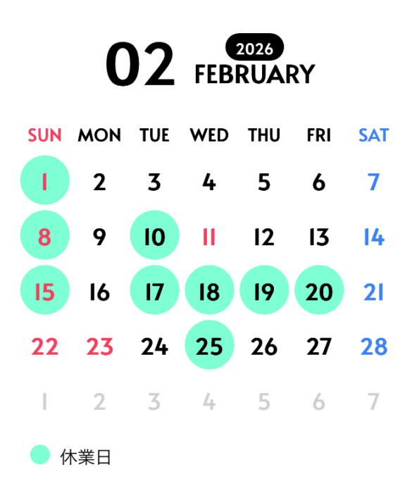 2月のお休みのお知らせ